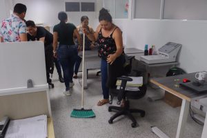 Funcionarios de la Gobernación se pusieron a limpiar y desinfectar sus lugares de trabajo
