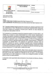 Ante RED SALUD CASANARE la Personería de Paz de Ariporo solicitó garantizar el cumplimiento del Plan de Contingencia ESI-IRAG 2020, la capacitación del personal, las áreas de aislamiento y la disposición de suministros e insumos para el personal de la salud y los pacientes que deban ingresar a la IPS (tapabocas N° 95); señalando que son una necesidad esencial.