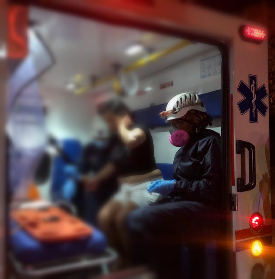 Personal de enfermería de Bomberos realizó la valoración de la paciente, de 38 años de edad, señalando que estaba consciente, alerta y orientada. Se  realizó control de sangrado y traslado.