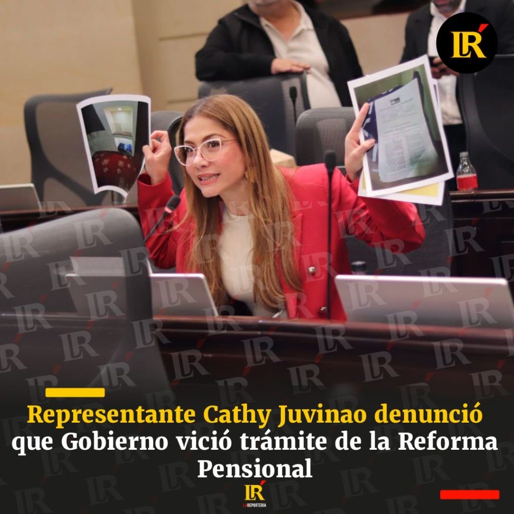 La representante de la Alianza Verde, Cathy Juvinao, denunció que el Gobierno Nacional habría viciado de forma intencional el trámite de la Reforma Pensional, en un movimiento que podría llevar a la Corte Constitucional a declararla inconstitucional. Según Juvinao, el 14 de junio de 2024, día del último debate en la Cámara de Representantes, se habría orquestado una serie de acciones con el fin de truncar el debido proceso legislativo.