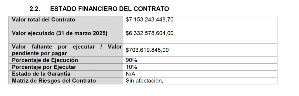 • Para el ente de fiscalización, se configura una OBSERVACIÓN ADMNINISTRATIVA CON INCIDENCIA DISCIPLINARIA Y FISCAL, por valor de $6.332 millones de pesos  M/CTE, correspondiente al 90% de los recursos ejecutados sin evidencia concluyente de cumplimiento contractual, incluidos los pagos a los contratos de orden de prestación de servicios.