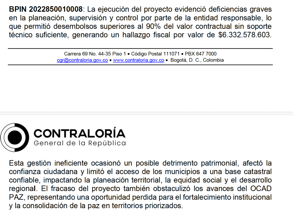 Esta gestión ineficiente ocasionó un posible detrimento patrimonial, afectó la confianza ciudadana y limitó el acceso del municipio, a una base catastral confiable, impactando la planeación territorial, la equidad social y el desarrollo regional.