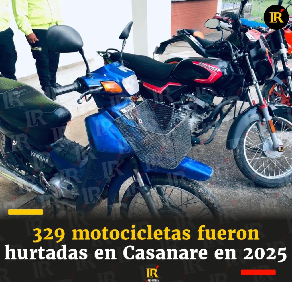El hurto de motocicletas está golpeando con fuerza a Casanare en lo corrido de 2025, según cifras oficiales de el departamento de polícia de Casanare, revelan que el departamento ya registra 329 motos robadas, un panorama que evidencia la capacidad operativa de las bandas dedicadas a este delito y que pone bajo alerta a los municipios más afectados, especialmente Yopal, donde se concentra la mayor presión delincuencial.