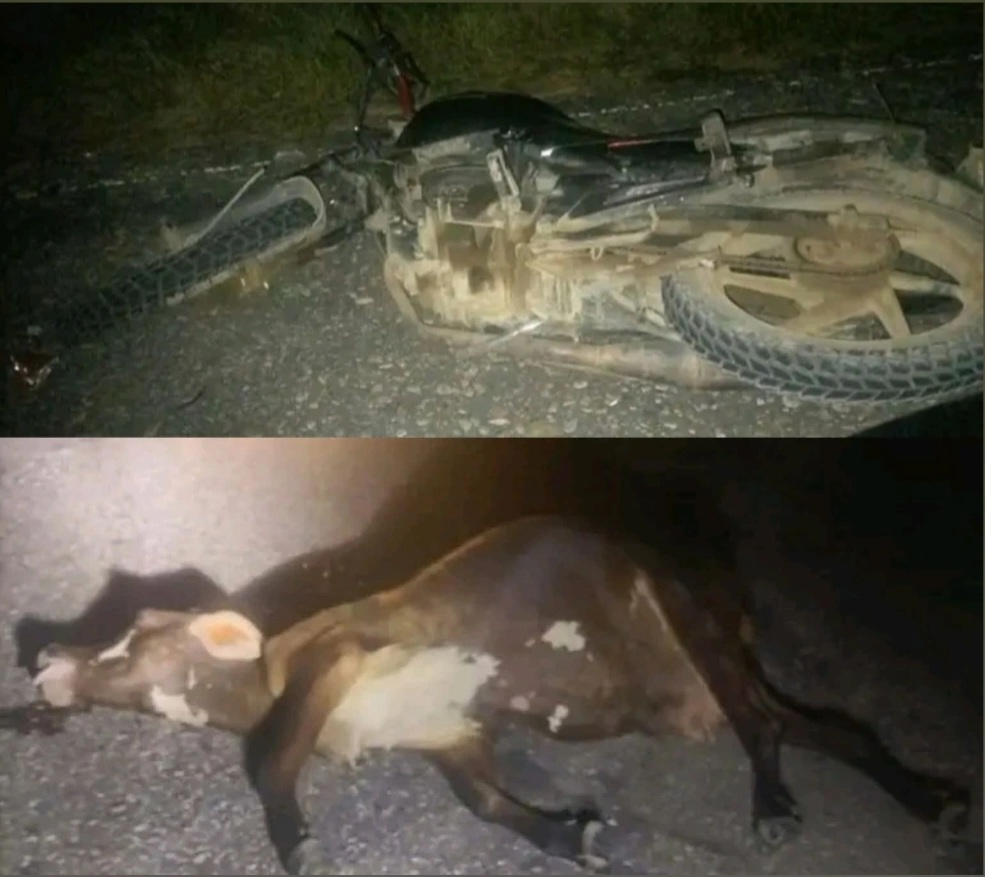 Un violento accidente de tránsito se registró en la vía que comunica los sectores de Santa Rita y San José, en el municipio de Hato Corozal, luego de que un motociclista colisionara de frente contra una vaca que se encontraba atravesada en la carretera.